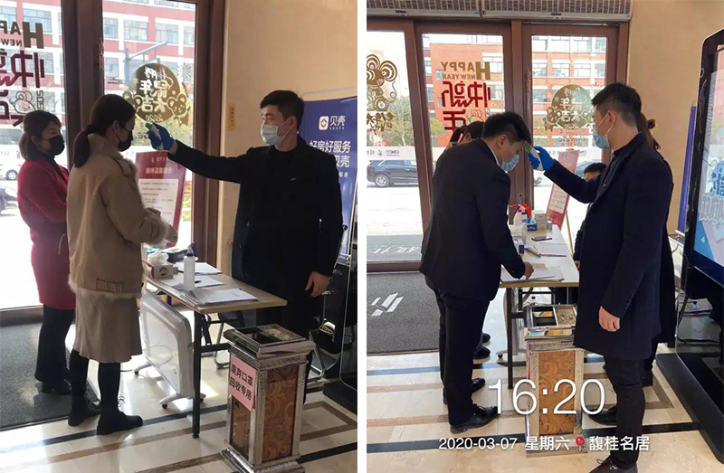 疫情防控小組每日售樓部消毒,來訪客戶量體溫登記,
